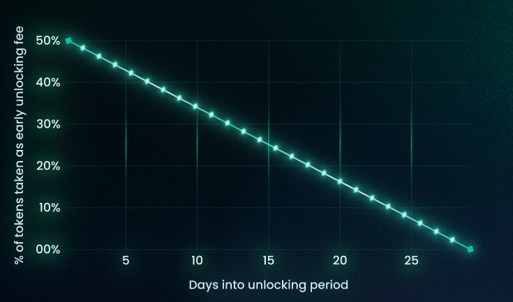 * Encouraging long-term token locking while reducing risk by increasing fees for early unlockers